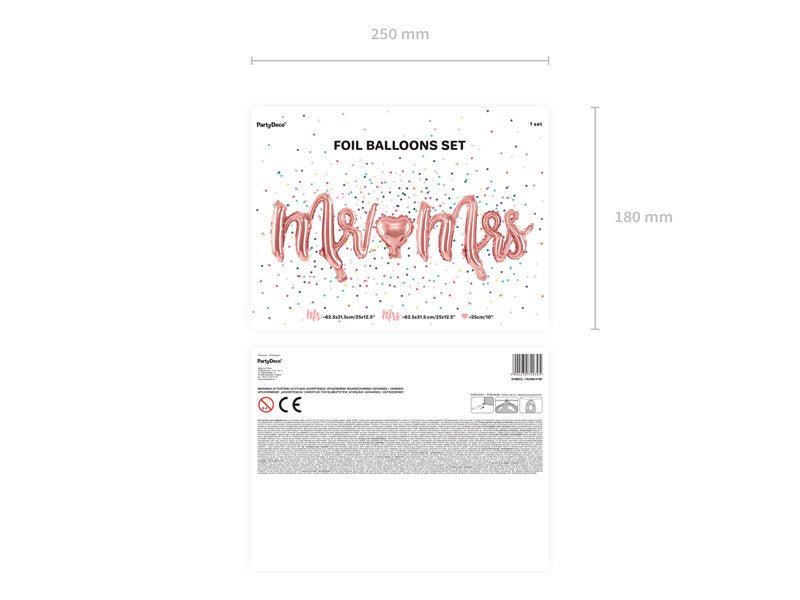Letterballon Set Mr Mrs Rose Goud Leeg 1,25m
