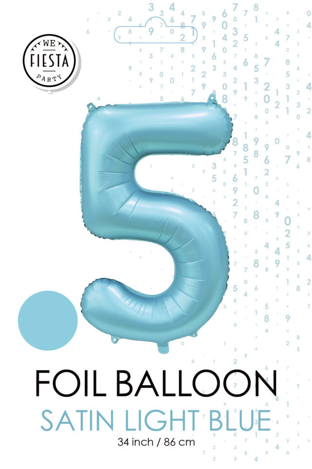 Lichtblauwe Cijfer Ballon 5 Jaar Glans 86cm
