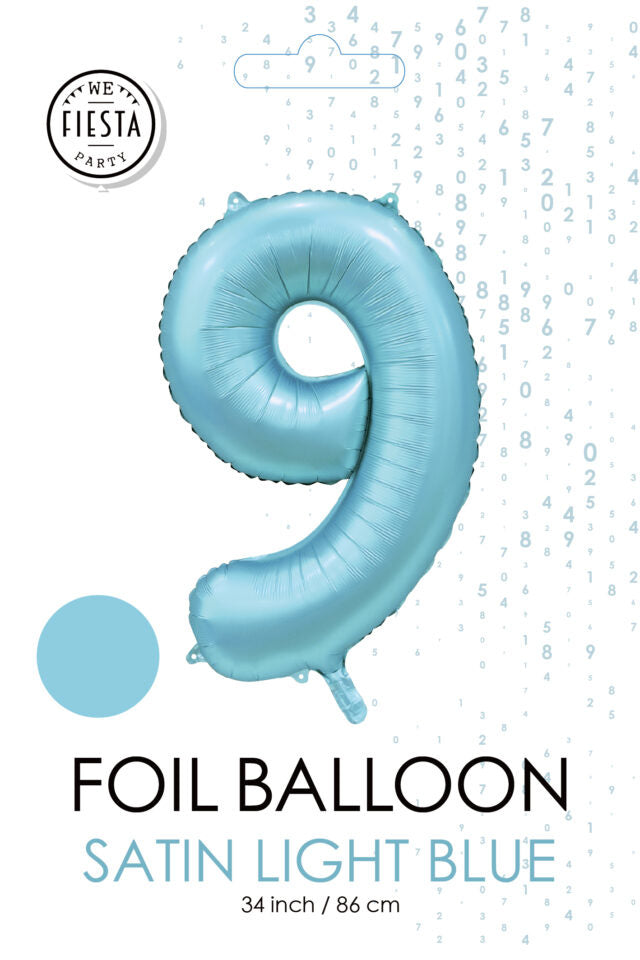Lichtblauwe Cijfer Ballon 9 Jaar Glans 86cm