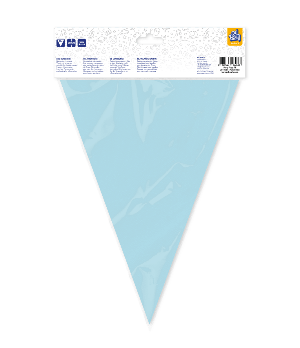 Breng direct sfeer in elke ruimte met deze fraaie pastelblauwe vlaggenlijn! Met een lengte van 10 meter is hij perfect voor verjaardagen, babyshowers, tuinfeesten of elke gelegenheid die een vrolijke touch kan gebruiken. De lichtblauwe kleur zorgt voor een frisse, zachte uitstraling die moeiteloos combineert met andere feestdecoratie.