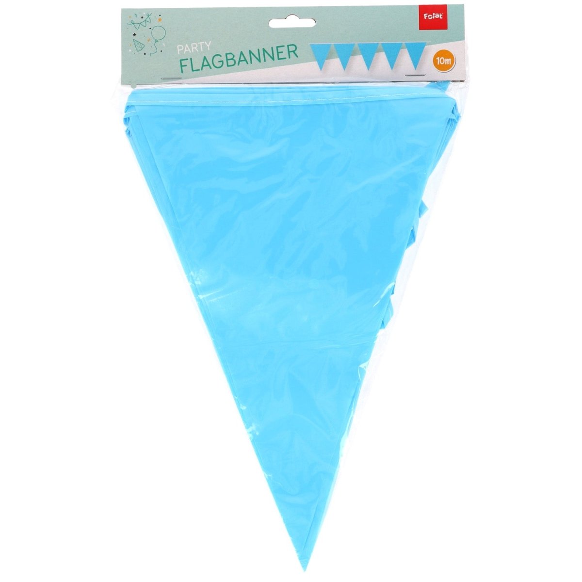 Vlaggenlijn Effen Baby Blauw - 10mtr. Inhoud: 1 vlaggenlijn van 10 meter. Kleur: Blauw. Bijvoorbeeld te gebruiken tijdens de volgende feestgelegenheid/feestgelegenheden: verjaardag, kinderfeestje. Deze slinger is 10 meter lang. Het artikel is gemaakt van plastic.