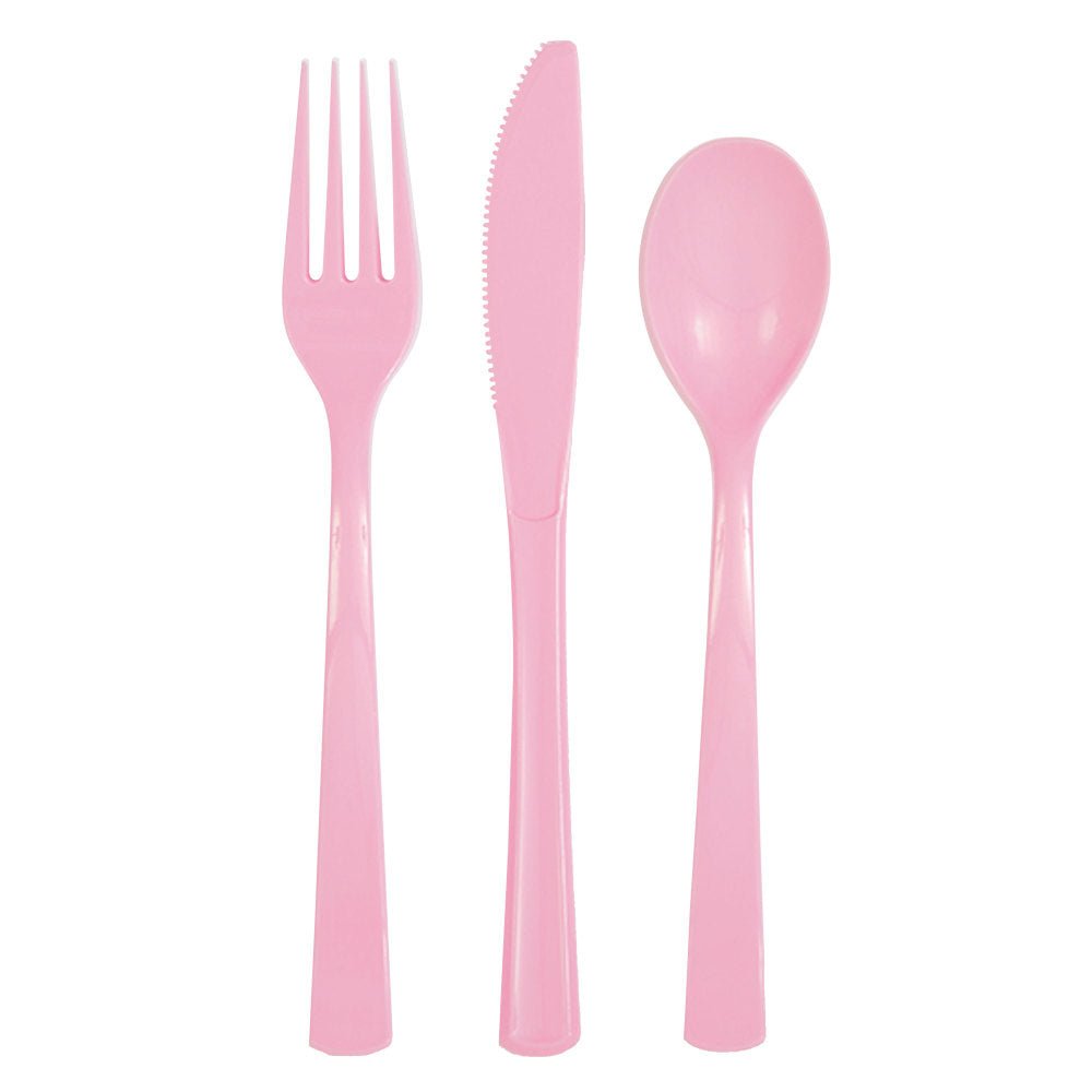 Verpakkingsinhoud: Lichtroze Bestek Plastic 18 delig