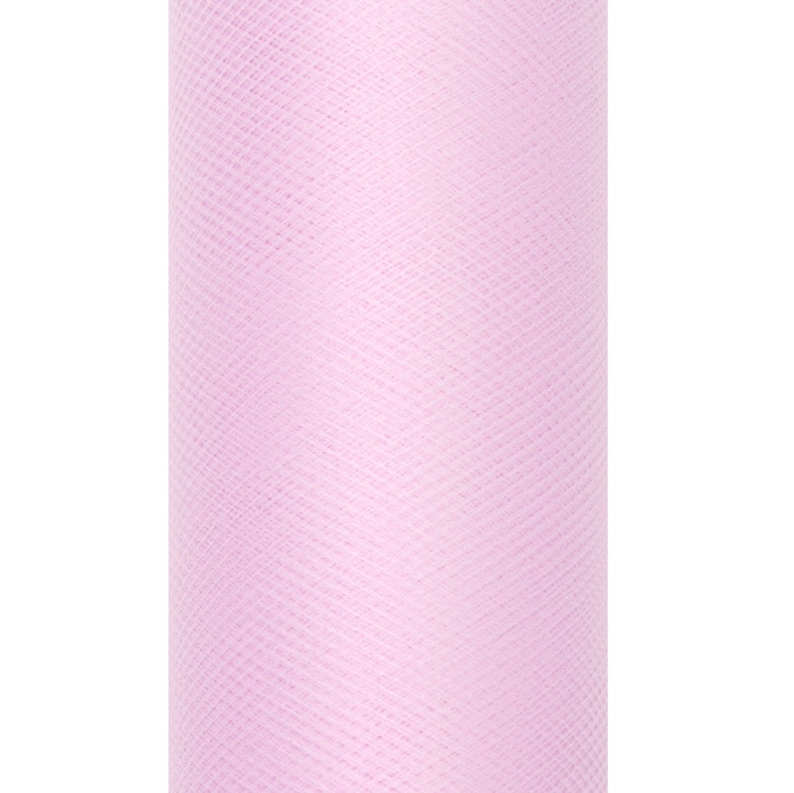Inhoud: Tulle Plain, licht roze, op een rol, grootte 0.15x9 meter. (1 st. / 9 lm)