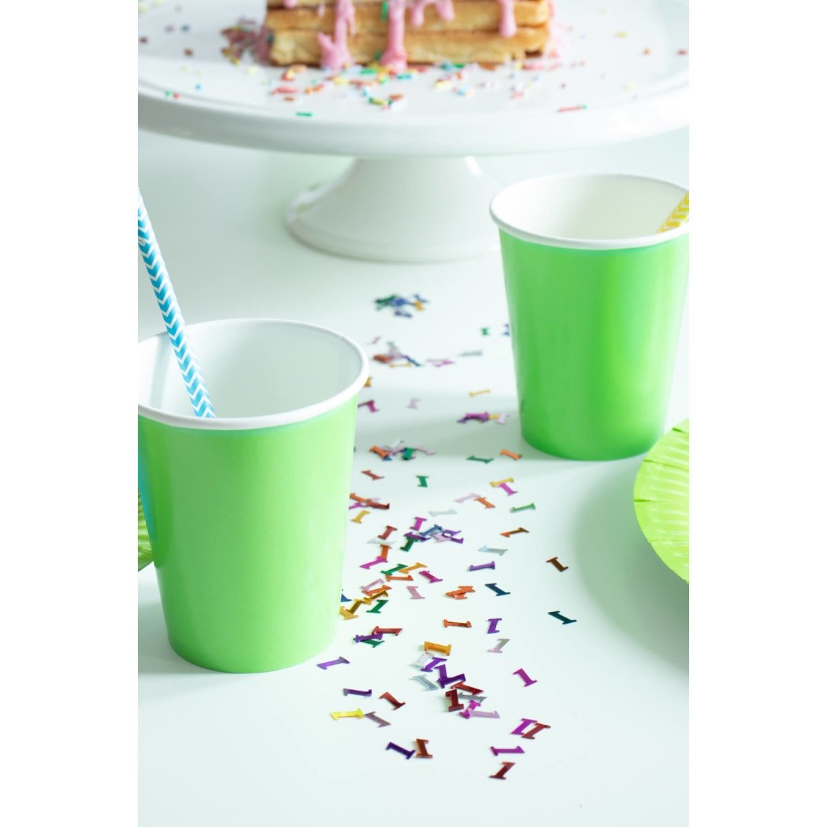 Groene Bekers 350ml - 8 stuks. Inhoud: 8 bekers. Kleur: Groen. Bijvoorbeeld te gebruiken tijdens de volgende feestgelegenheid/feestgelegenheden: Verjaardag, Kinderfeestje, Themafeest. Een beker heeft een inhoud van 350 ml. Het artikel is gemaakt van papier.