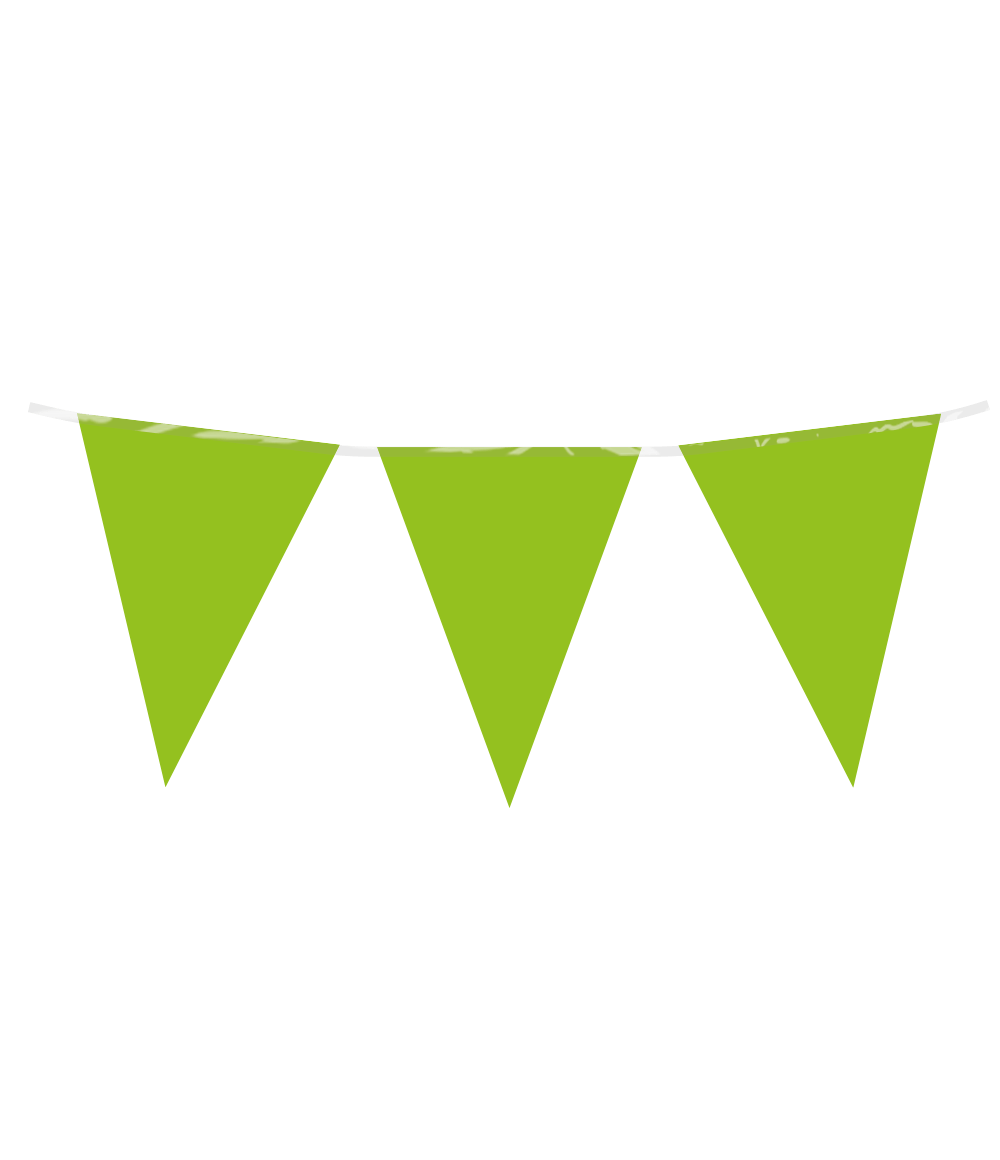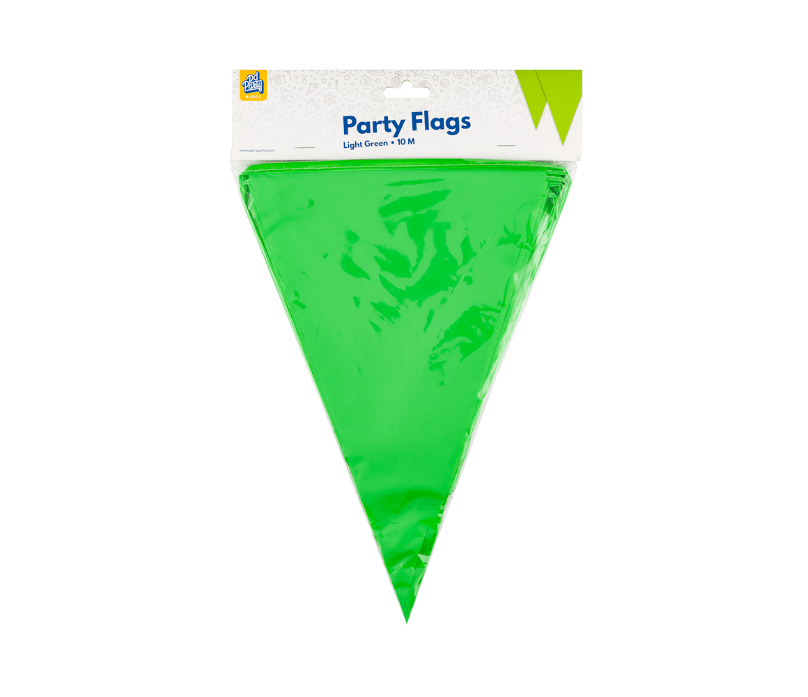 Met de party flags PE - light green uit de Basic collectie van Paper Dreams haal je een kwalitatieve licht groene vlaggenlijn in huis voor een scherpe prijs. De vlaggenlijn is 10 meter lang. De vlaggetjes zijn gemaakt van Polyetheen (PE) en zijn gemakkelijk op te hangen.