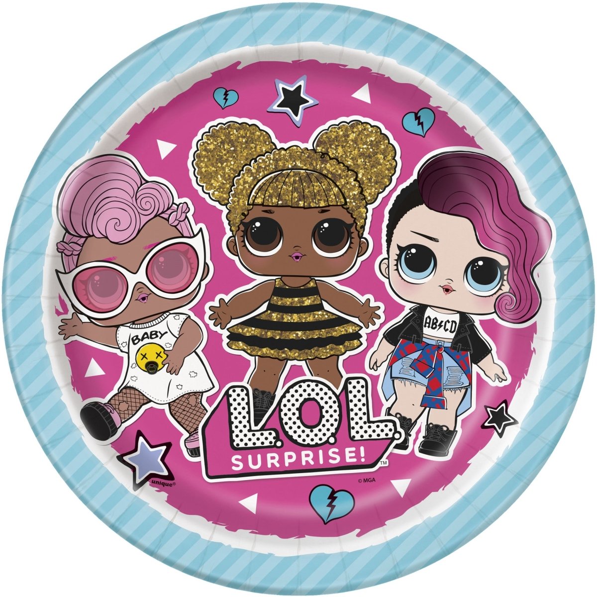 Deze set van 8 stuks borden met een doorsnede van 23 centimeter is gemaakt van papier in LOL Surprise thema. Geschikt voor maaltijden of een buffet.