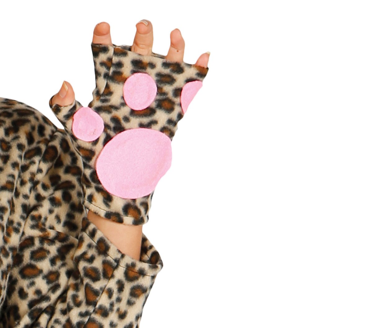 Inhoud: luipaard jurk met capuchon en staart en handschoenen