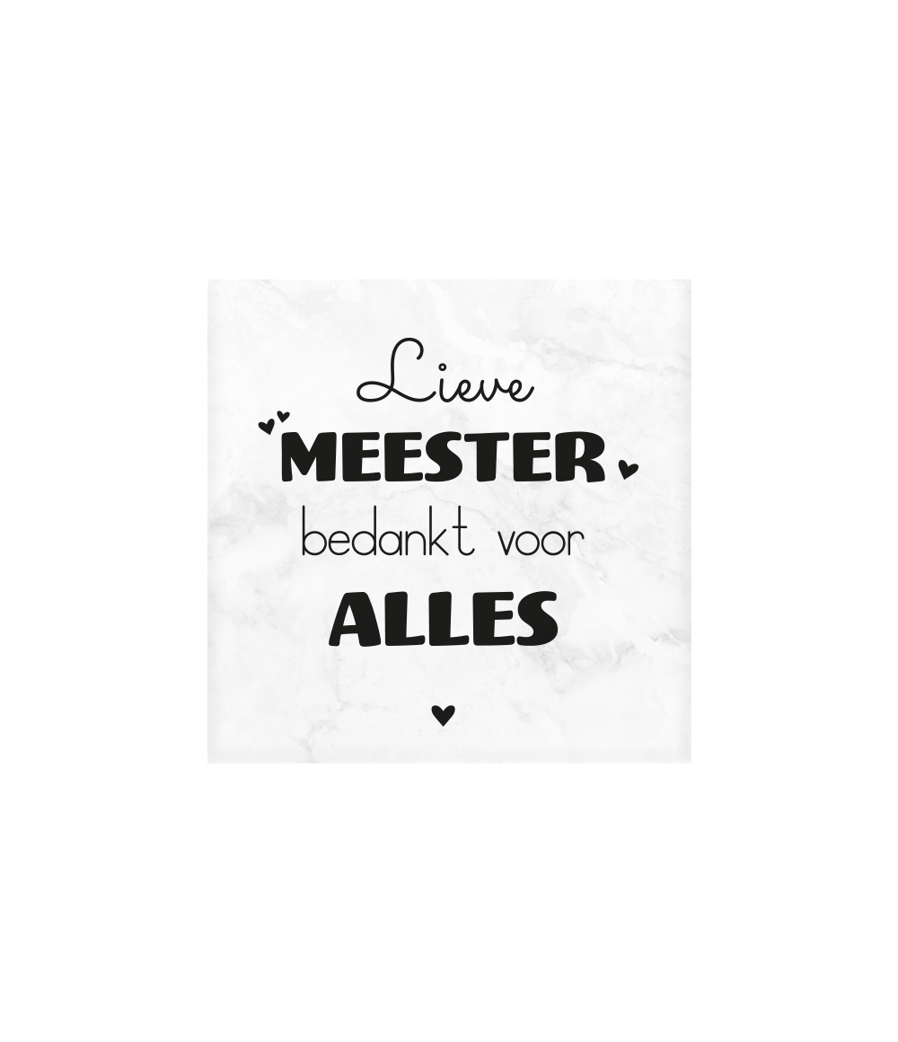 Paper Dreams heeft een leuke collectie marmeren onderzetters in het assortiment waaronder marmeren onderzetters - meester. Het praktische nut en het leuke design maken deze onderzetters tot een perfect cadeau artikel! De onderzetters zijn 10 bij 10 centimeter.