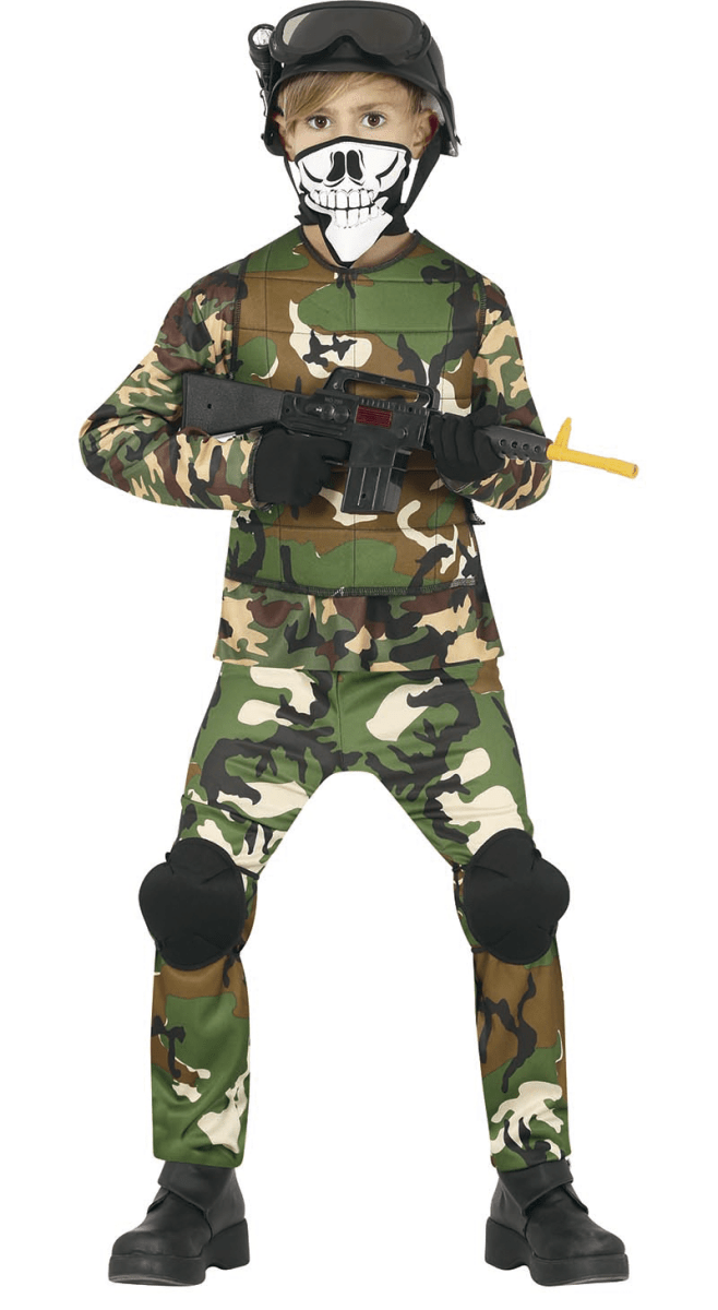 Inhoud: sjaal, shirt, borst, knie pads, broek