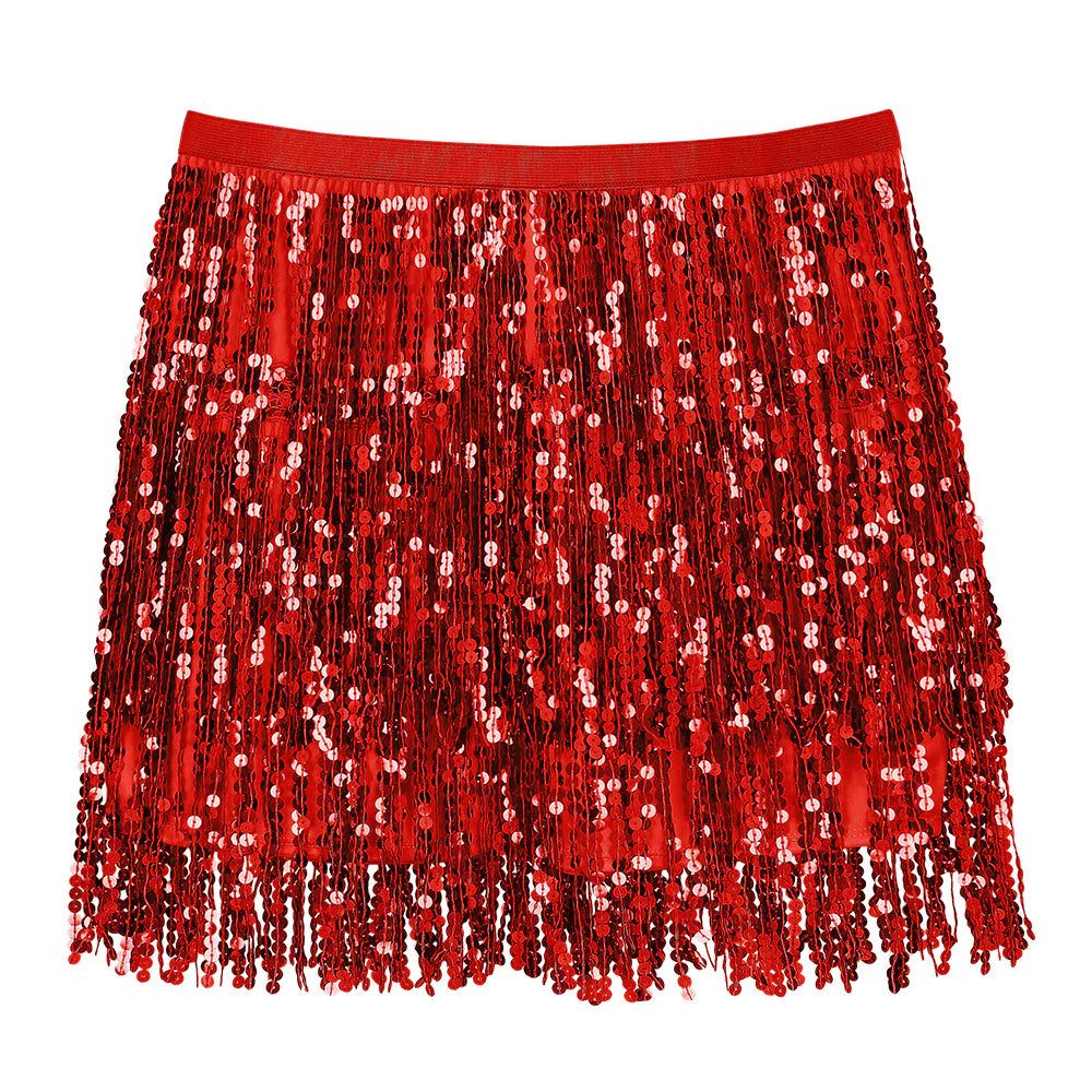 Laat jezelf stralen met dit sprankelende rode minirokje! Versierd met glinsterende pailletten en speelse franjes, beweegt het rokje mee bij elke stap voor een onweerstaanbaar effect. Perfect voor feestjes, carnaval of themafeesten.