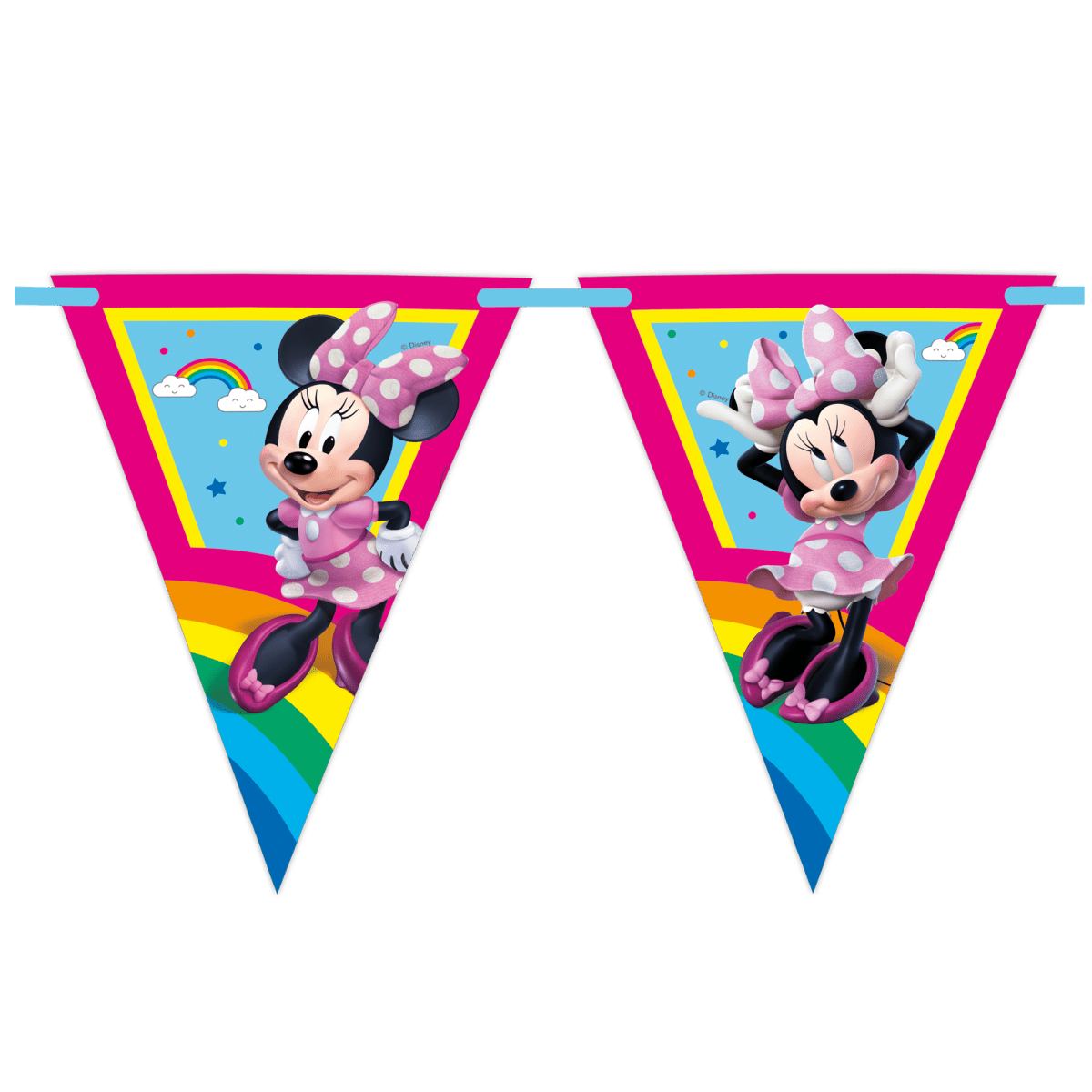 Deze Minnie Mouse slinger is de perfecte decoratie voor elk kinderfeest of Disney-themafeest. De vrolijke vlaggetjes met Minnie-design zorgen direct voor een speelse en kleurrijke sfeer. Dankzij het lichte papieren materiaal is de slinger eenvoudig op te hangen en ideaal voor binnengebruik.