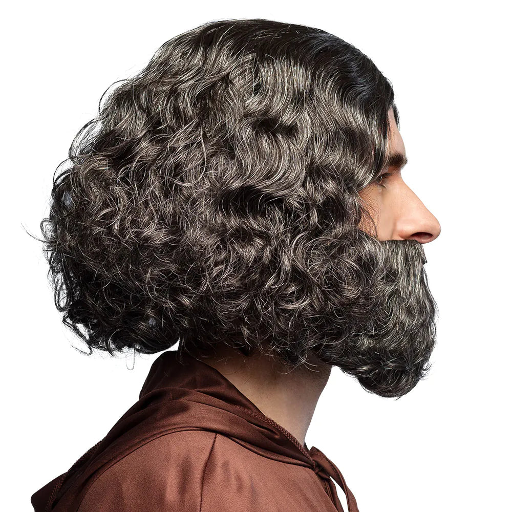 Verkleed als monnik naar carnaval of een foute party? Deze pruik met baard en snor maakt de look van een vrome monnik helemaal af.