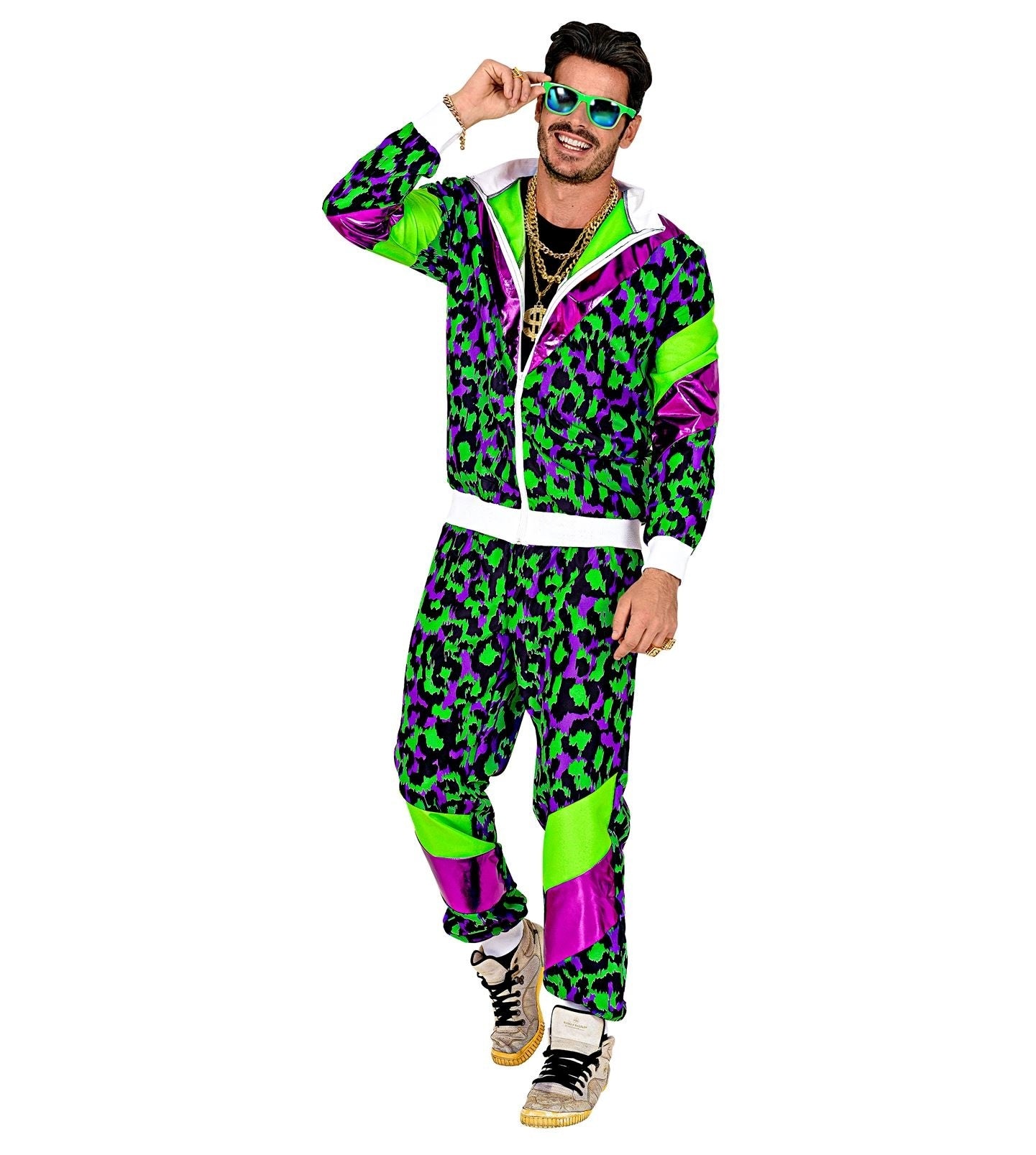 Neon 80S Trainingspak Fout Neon Groen Dierenprint