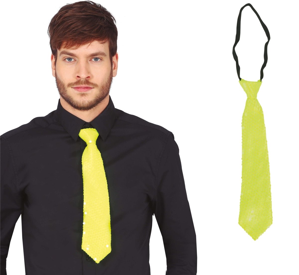 Neon Gele Stropdas Glitter 37cm