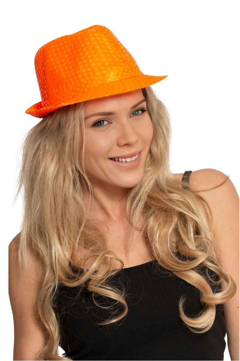 Neon Oranje Hoed Pailletten