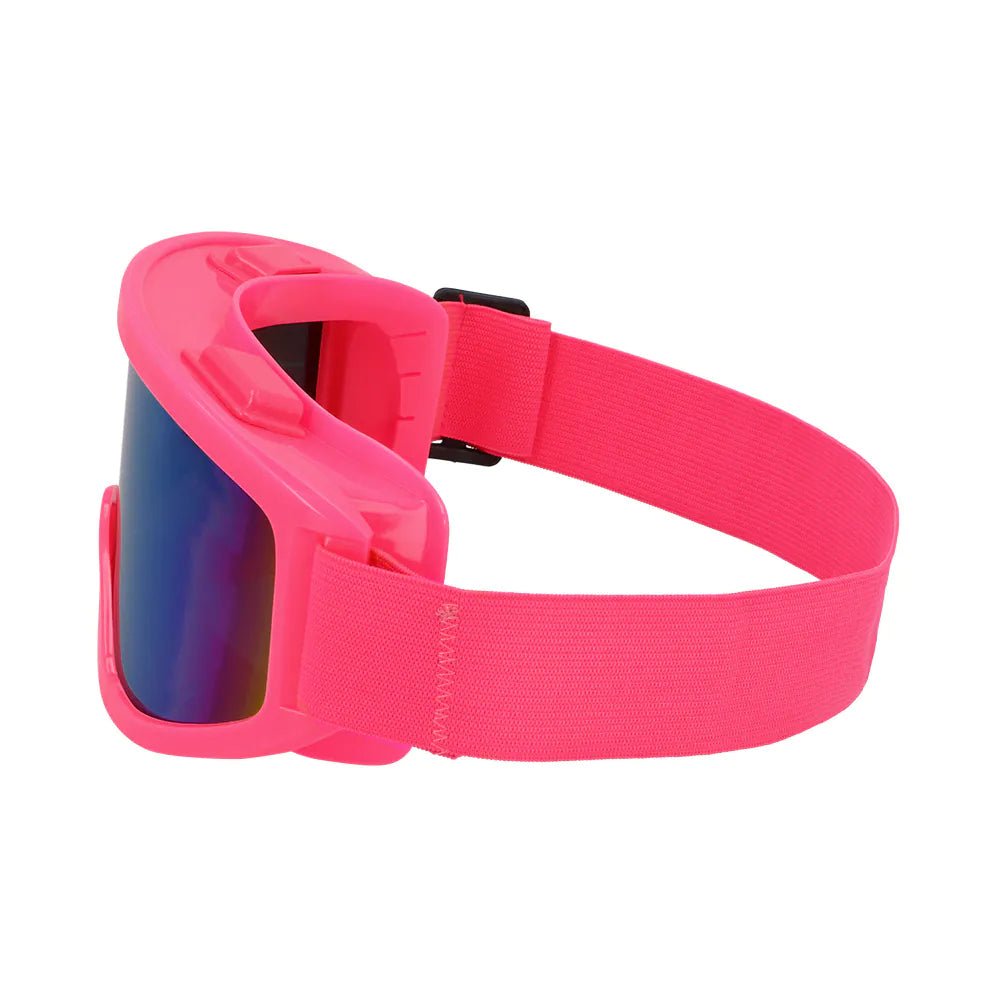 Deze opvallende party skibril, met felle neon roze kleur en coole design, is de ultieme eyecatcher die elke look naar een hoger niveau tilt. Perfect voor party animals die graag opvallen. Of je nu los gaat op een festival of in polonaise in je retro jaren 90 skipak tijdens carnaval de kroeg doorloopt, met deze neon skibril ben je zeker weten het stralende middelpunt.