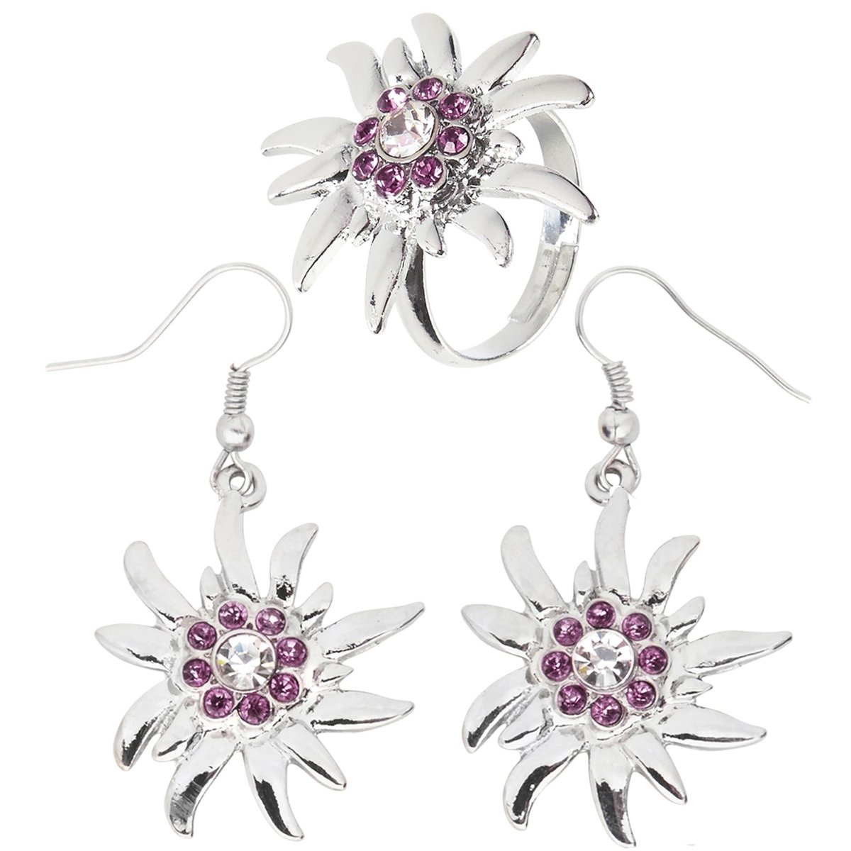 Oktoberfest Accessoireset Roze Zilver Oorbellen En Ring