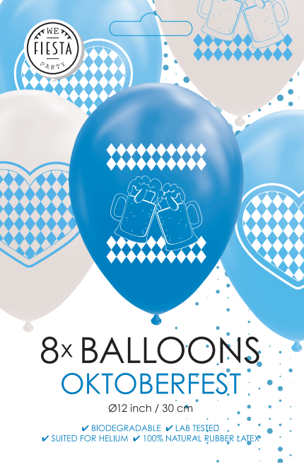 Oktoberfest Ballonnen Blauw Wit 30cm 8st