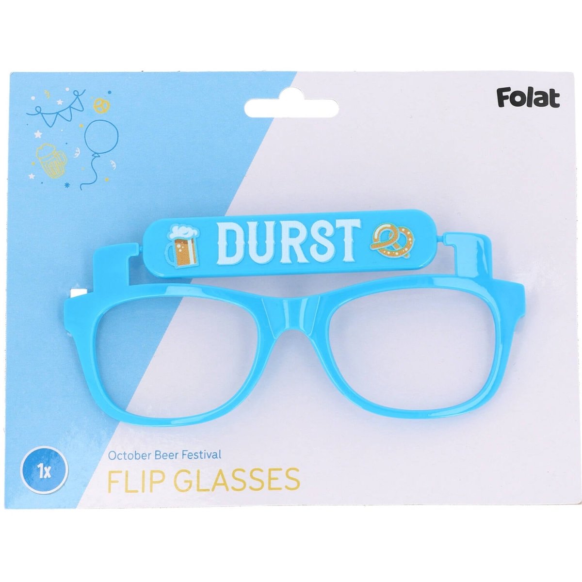 Vier het bierfeest met deze feestelijke bril die je eenvoudig kunt omdraaien van “PROST” naar “DURST”. Perfect voor Oktoberfest of andere bierfestivals en een leuke gadget voor iedere bierliefhebber.