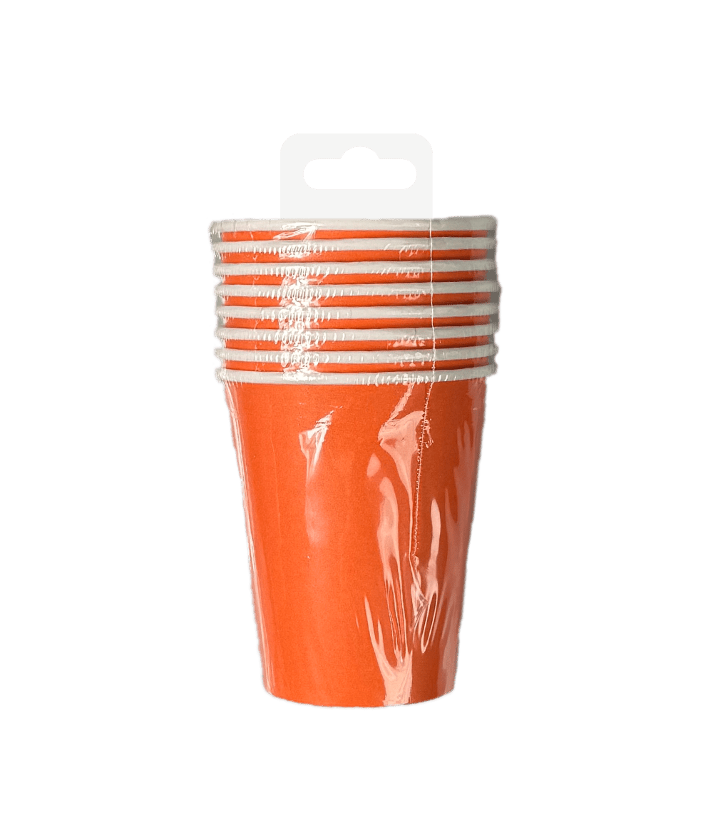 De Cups - Orange zijn de perfecte decoratie artikelen op een feestje waar de kleur oranje het thema is. Deze bekertjes zijn 8,5 x 7cm, zitten per 8 verpakt en passen perfect bij de overige oranje artikelen zoals de confetti, servetten, bordjes, tafelkleden, snackboxes en vlaggenlijn. Presenteer deze items bij elkaar, zodat het voor de klant direct duidelijk is waar deze collectie uit bestaat. Deze bekertjes zijn van papier, wat het tot een milieuvriendelijke keuze maakt!