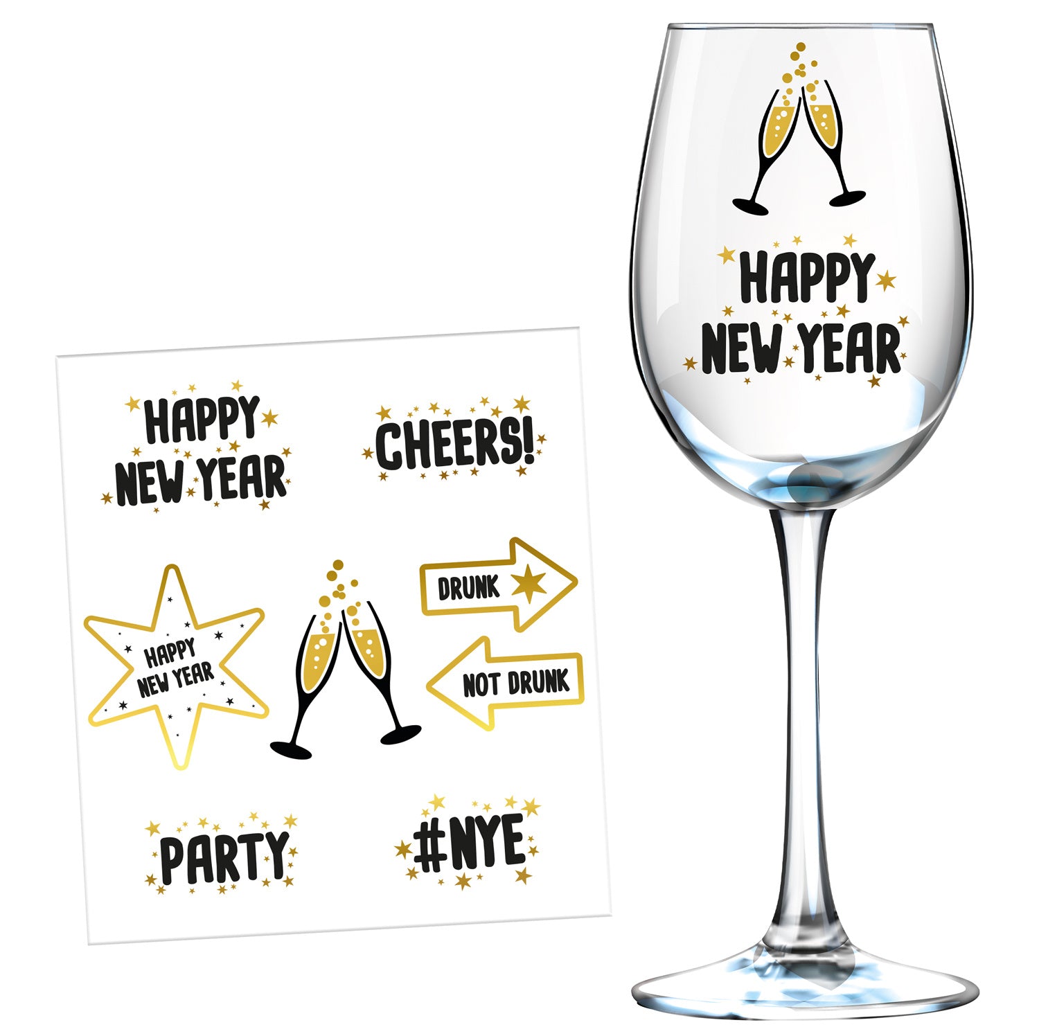 Overal feest. Ook op het raam. Raamstickers, BlackGold HNY, 8 stuks. Inhoud: 8 raamstickers. Bijvoorbeeld te gebruiken tijdens de volgende feestgelegenheid/feestgelegenheden: Oud en Nieuw. Deze 8 raamstickers zitten op 1 stickervel van 12 x 13,5 cm. De stickers zijn eenzijdig bedrukt. Idee: ze staan ook leuk op spiegels. Dit artikel is gemaakt van papier.