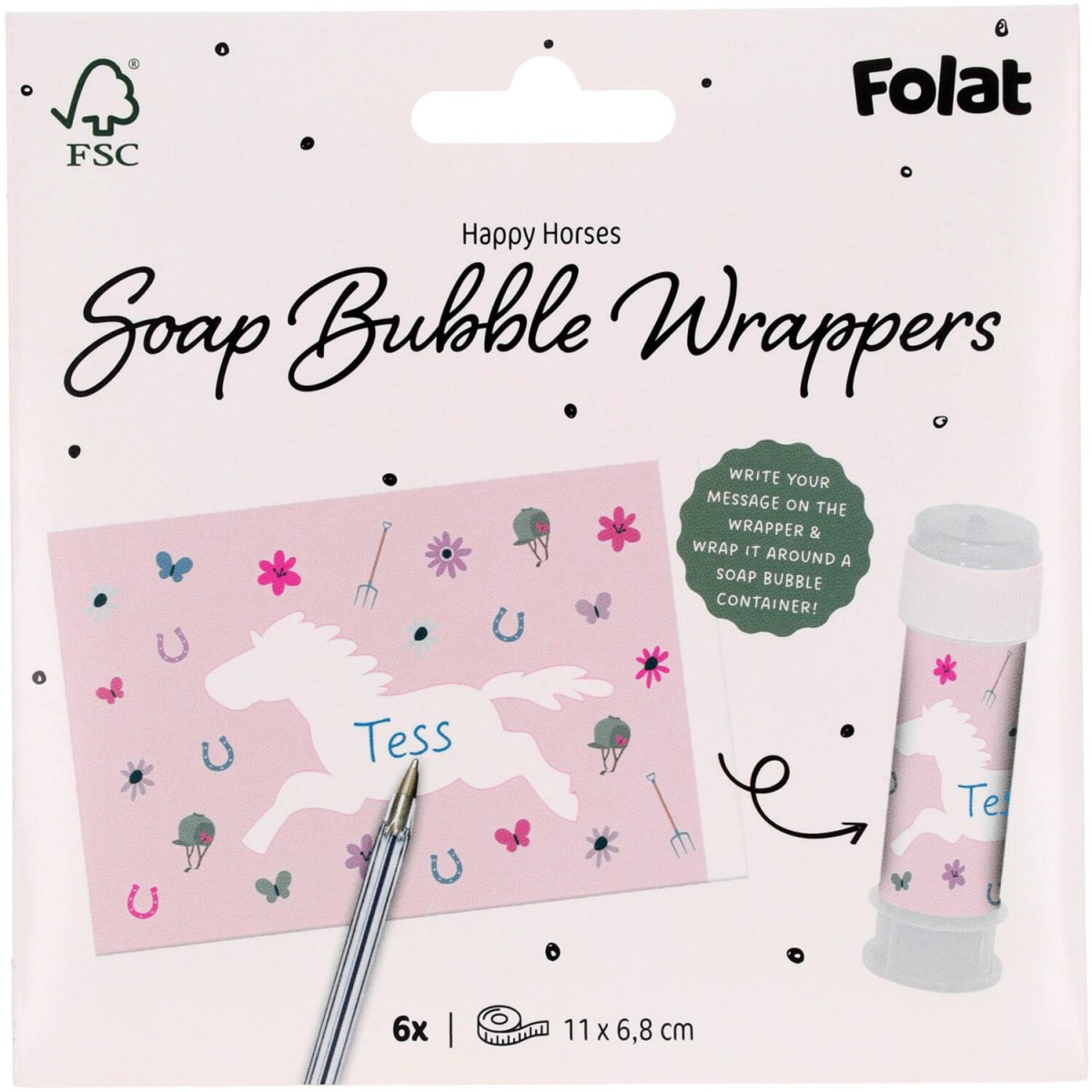 Voor iedere paardenfan een bellenblaas. Bellenblaas Stickers - Happy Horse -6 stuks. Inhoud: 6 bellenblaasstickers. Bijvoorbeeld te gebruiken tijdens de volgende feestgelegenheid/feestgelegenheden: Kinderfeestje, Verjaardag, Themafeest. Iedereen een eigen bellenblaas. Deze paarden-bellenblaasstickers passen op een standaard bellenblaasflesje en hebben een afmeting van: 11 x 6,8 cm. Ze zijn eenzijdig bedrukt. Deze bellenblaasstickers horen bij de Happy Horses collectie van Folat. Dit artikel is gemaakt van papier.