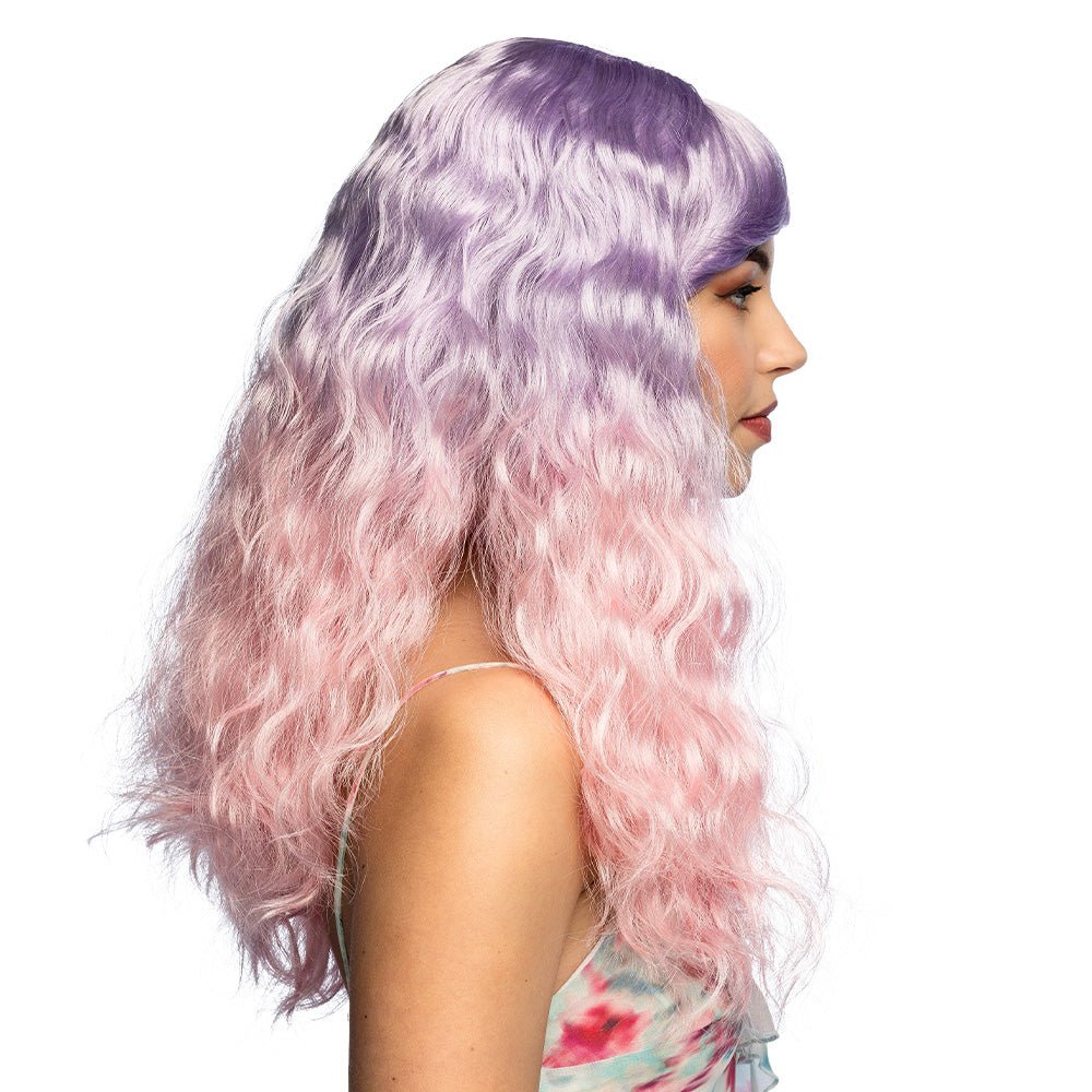 Paars Roze Pruik Golvend Pastel