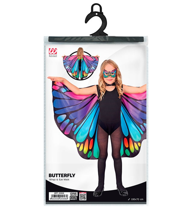 Met deze vlindervleugels en het oogmasker kan elk kind zich in een handomdraai omtoveren tot een betoverend fantasiefiguur.