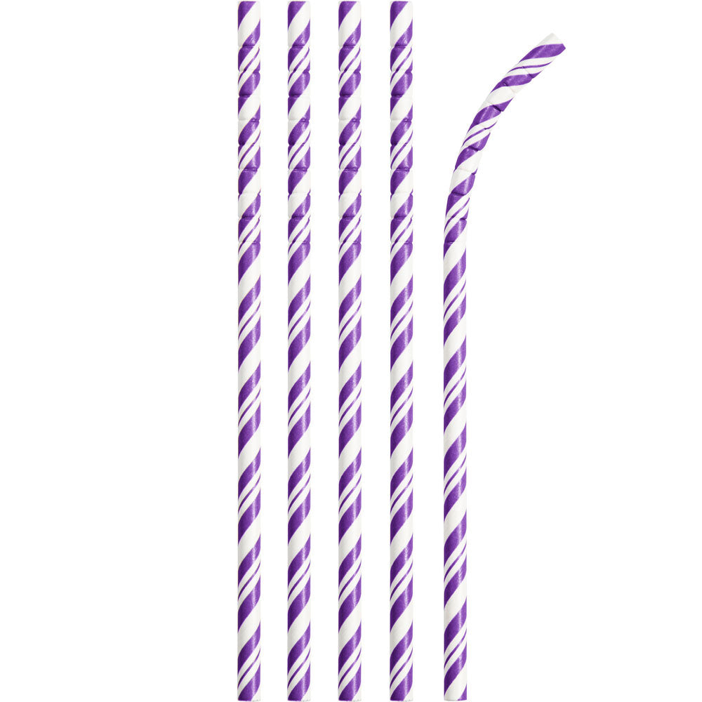 Deze papieren rietjes van topkwaliteit, in een paarse en witte snoepstreepprint, zijn biologisch afbreekbaar, duurzaam geproduceerd en gemaakt met inkten van voedingskwaliteit in de VS. Gepatenteerde Eco-Flex®-technologie geeft ze de buiging en flexibiliteit van een plastic rietje, en betrouwbare kwaliteit betekent dat ze niet uitrafelen of uiteenvallen. Een echt uniek en uitstekend product!