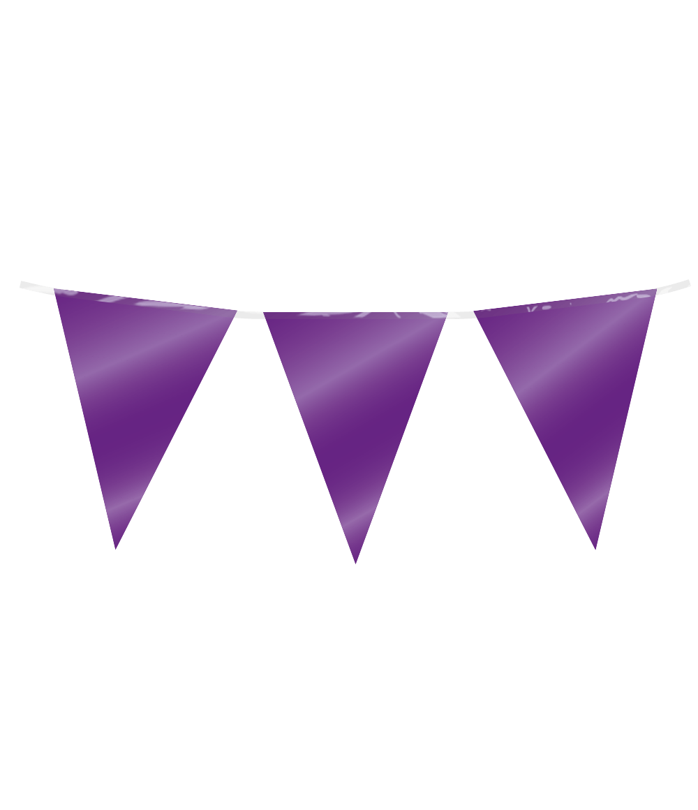 Met de party flags foil - purple uit de Basic collectie van Paper Dreams haal je een kwalitatieve paarse vlaggenlijn in huis voor een scherpe prijs. De vlaggenlijn is 10 meter lang.