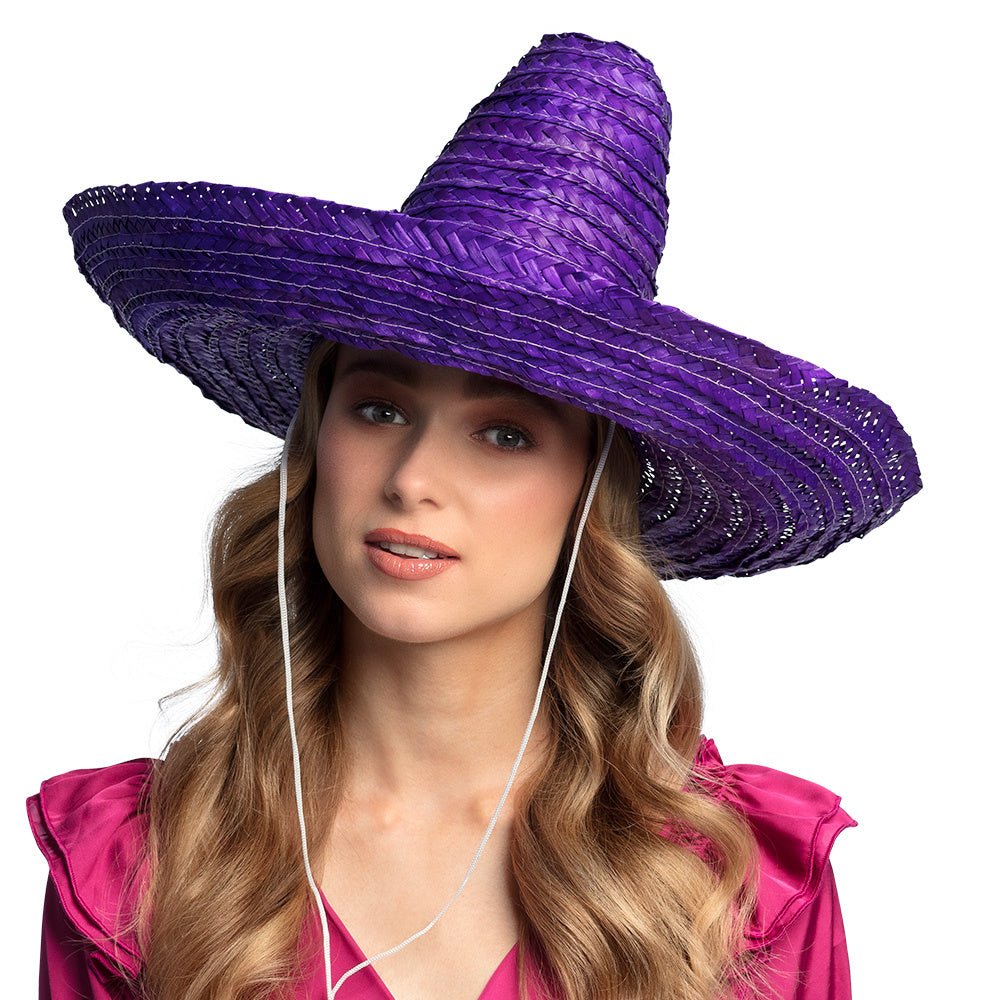 Viva la fiesta! Deze traditionele Mexicaanse hoed brengt een vleugje zonneschijn en vrolijkheid naar elk feest. Met zijn vrolijke paarse kleur en authentieke uitstraling voegt deze sombrero een speels accent toe aan een outfit. Of je nu een Mexicaans themafeest viert of een zomerse barbecue hebt, deze sombrero is de perfecte keuze.