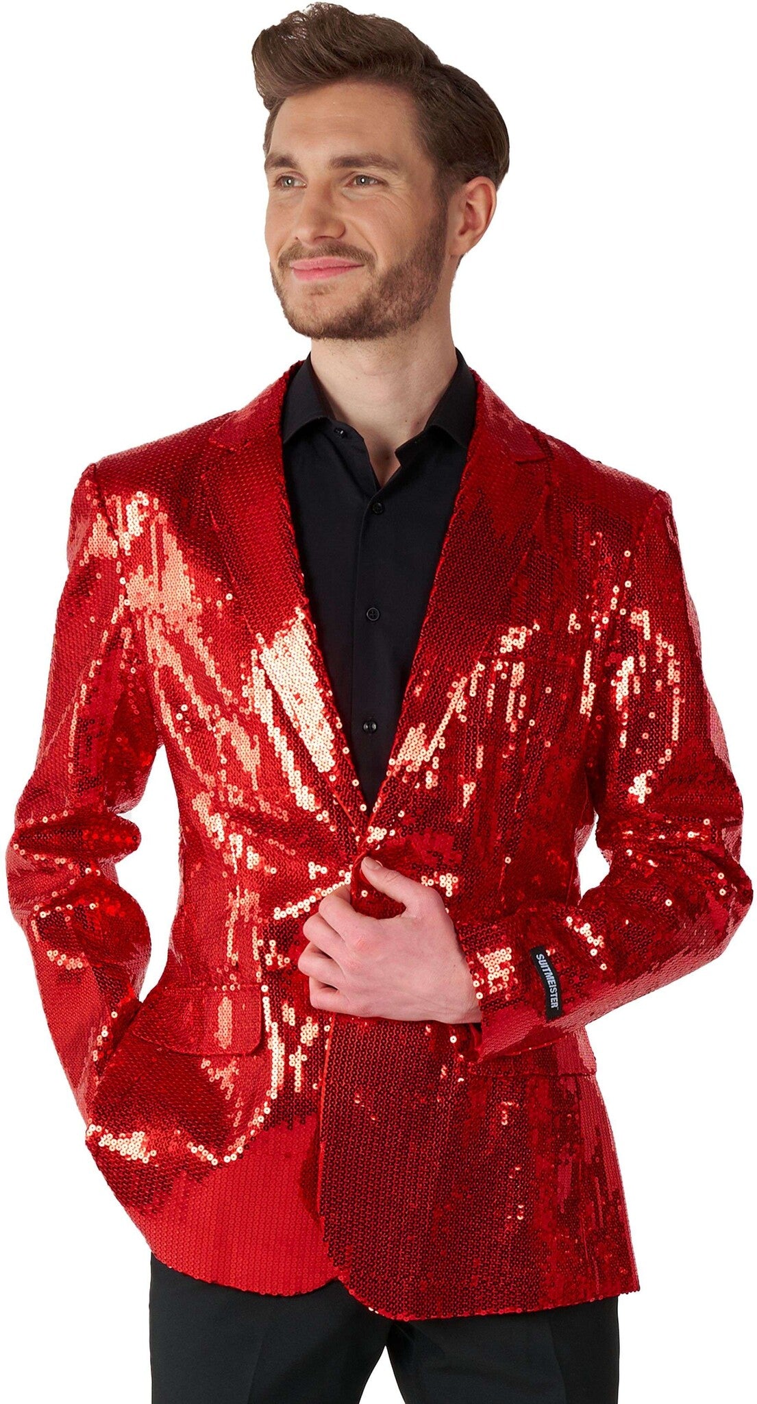 Ben je op zoek naar een outfit met glans? Deze opvallende blazer met rode pailletten is de perfecte outfit voor elk evenement waar je naartoe gaat. Waar wacht je nog op? Haal het beste uit elke avond met dit rode paillettenjasje!