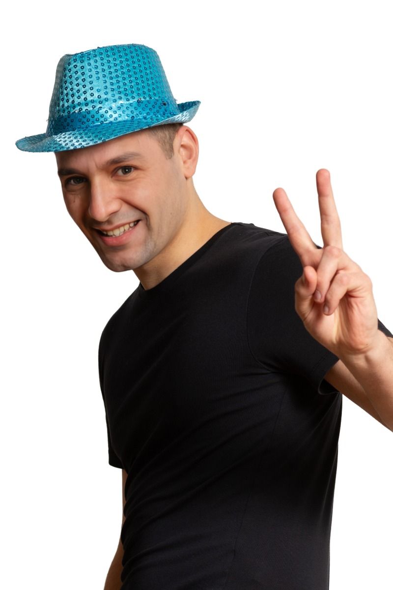 Pailletten Hoedje Turquoise met licht incl Batterijen