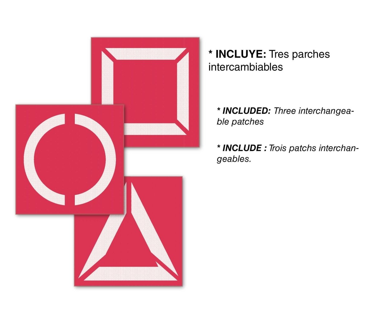 Inhoud: jumpsuit met capuchon en verwisselbare symbolen