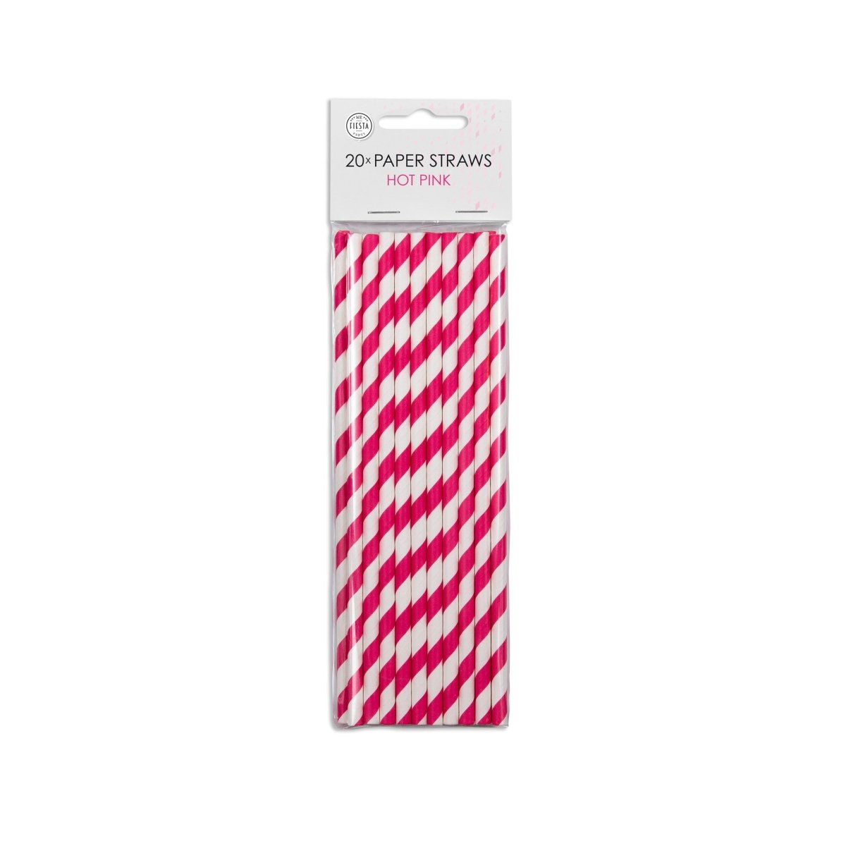 Papieren Rietjes Fuchsia Gestreept 19,7cm 20st
