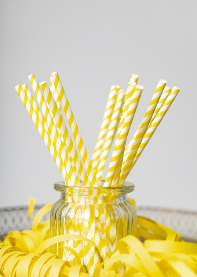 Papieren Rietjes Gele Gestreept 19,7cm 20st