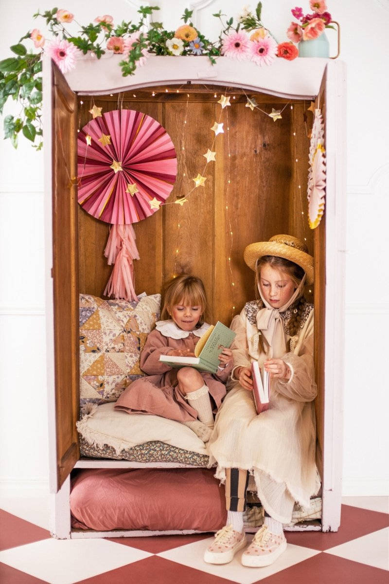 Sierrozetten Bloemen, mix van kleuren, gemaakt van lichtroze papier met franje, diameters na montage ca. 26 cm, 35 cm, 43 cm.