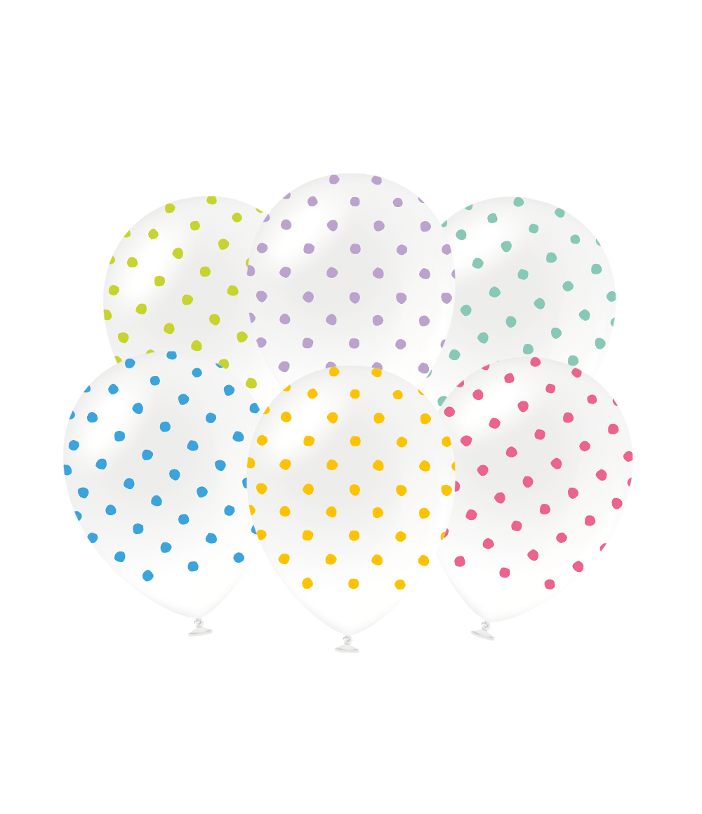 Elke verpakking bevat 6 ballonnen, ideaal als compact en goedverkopend feestartikel. Combineer ze met de bijpassende vlaggetjes, tafeldecoratie of party blowouts uit dezelfde Party Dots-lijn voor een compleet en harmonieus feestthema.