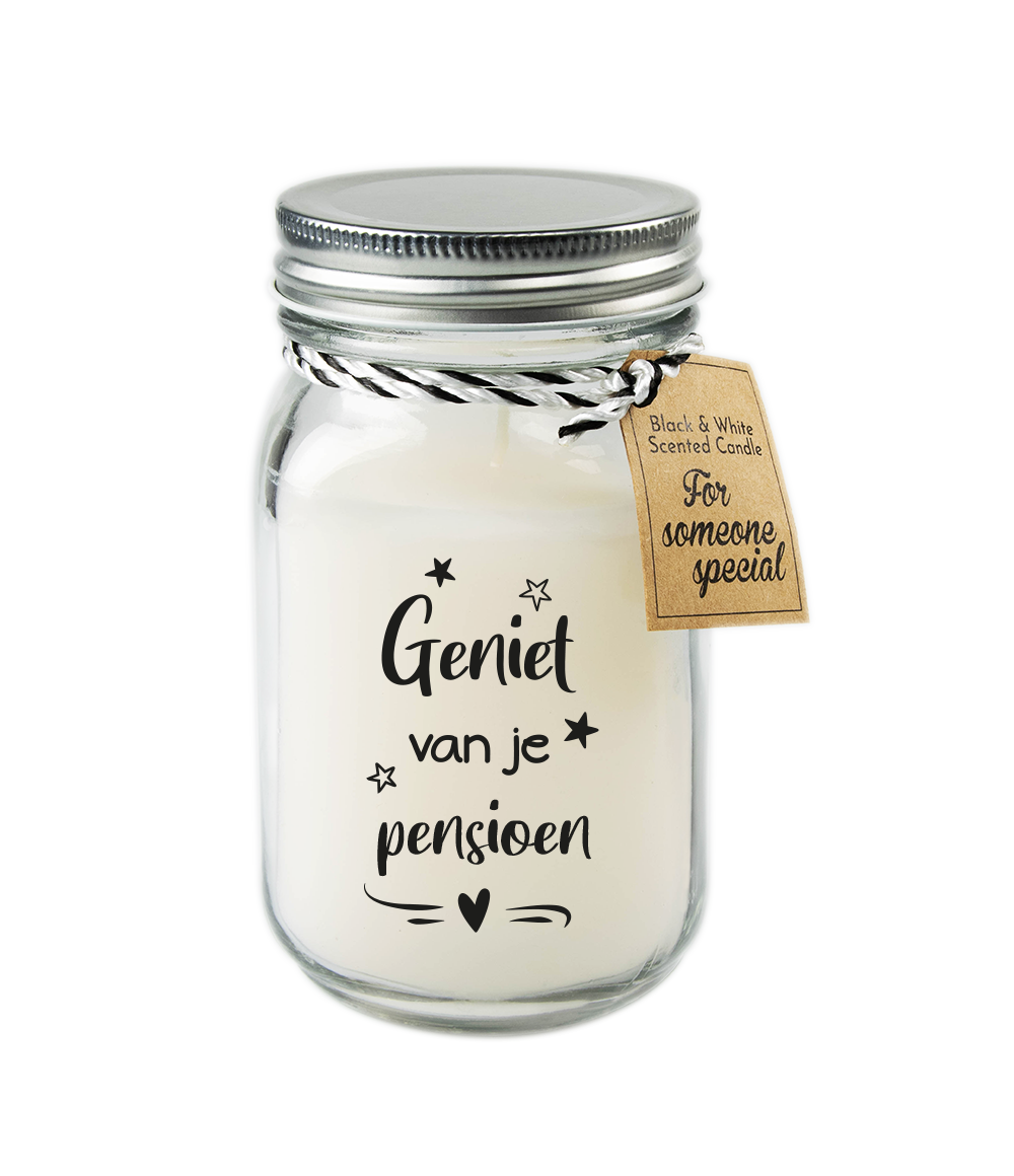 Deze zwart witte geurkaars met vanillegeur zit in een mooie glazen pot en brand ongeveer 80 uur. Zorg voor sfeer in huis met deze leuke Scented Candle!
