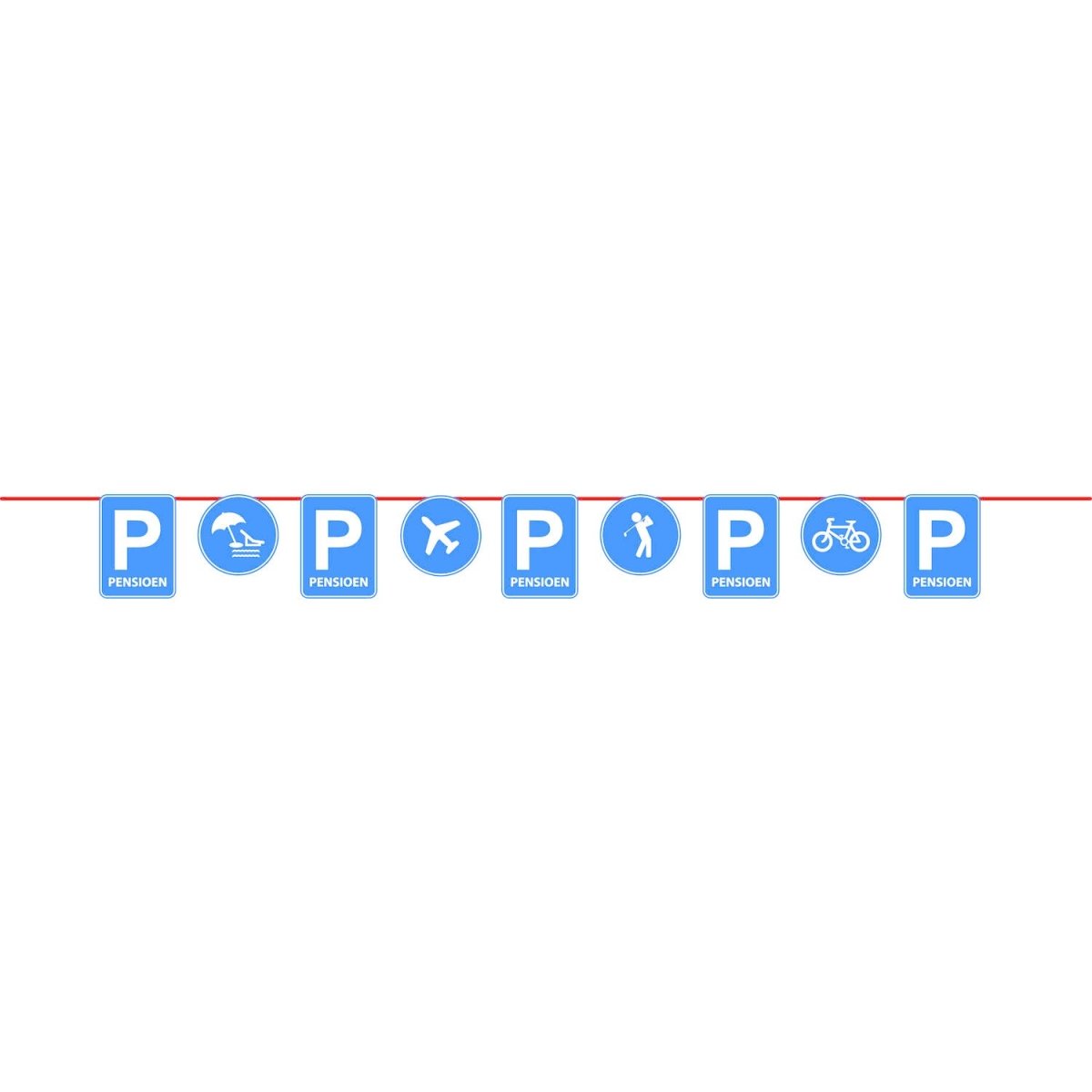 Pensioen Parkeerbord Vlaggenlijn - 10 meter. Inhoud: 1 vlaggenlijn. Kleur: Blauw. Productthema: Pensioen. Bijvoorbeeld te gebruiken tijdens de volgende feestgelegenheid/feestgelegenheden: VUT/Pensioen. Deze slinger is 10 meter lang. Het artikel is gemaakt van papier.
