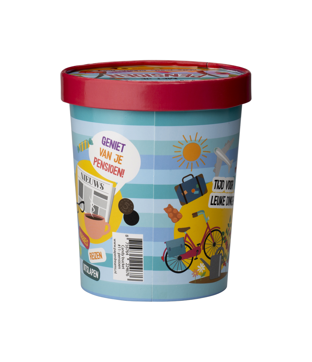 De vrolijke candy buckets zijn een echte eyecatcher in de winkel. Mede door het leuke design is deze candy bucket erg leuk om te krijgen. De snoepemmers zijn gemaakt van karton!