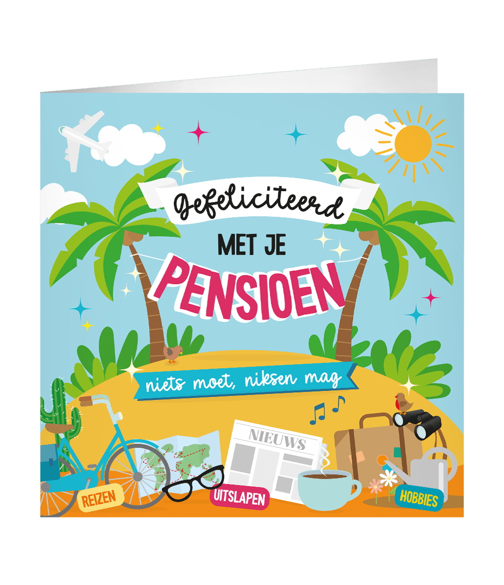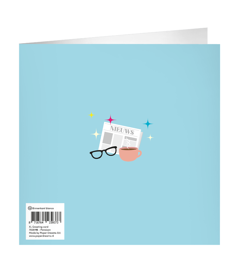 XL Greeting cards - Pensioen is de perfecte kaart om te versturen als er iemand met pensioen gaat. Niet alleen het leuke design zal opvallen bij de ontvanger, ook de grote afmeting van ongeveer 23 x 23 centimeter is gewoon niet te missen!