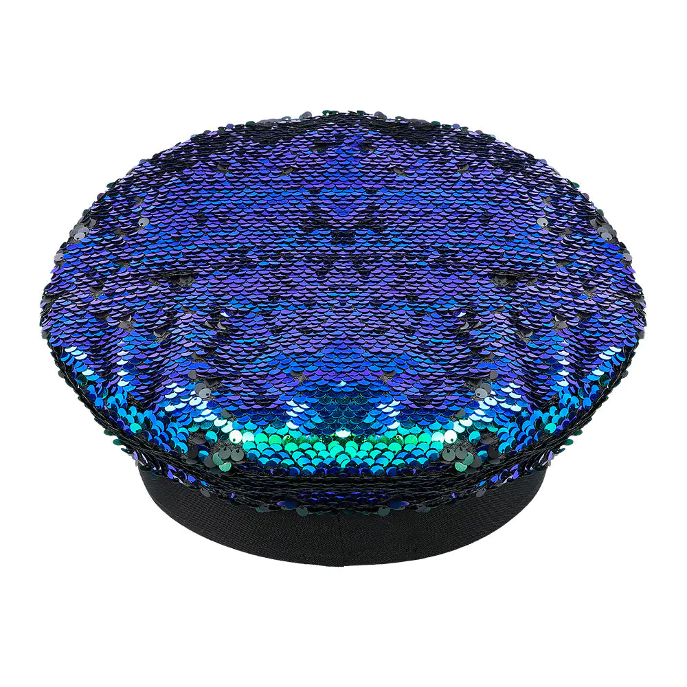 Maak je festivallook af met deze opvallende zwart/blauwe hoed met omkeerbare pailletten. Door over de pailletten te strijken veranderen ze van zwart naar metallic blauw/groen en andersom. Ook voor carnaval of Pride is deze bling bling hoed het perfecte accessoire. Let's get the party started!