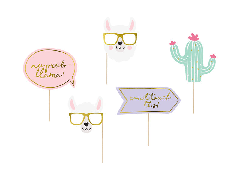 Foto rekwisieten Llama, mix van dessins en kleuren, formaat van ca. 16 x 28 cm tot ca. 30 x 27,5 cm.