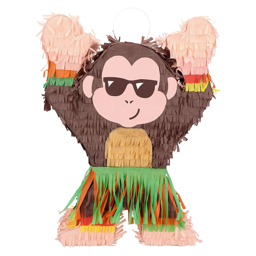 Voeg een tropische en vrolijke sfeer toe aan het feest met deze grappige hula dansende aap piñata! De piñata is ideaal voor verjaardagsfeestjes, zomerfeesten en themafeesten. De hawaii aap piñata kan worden gevuld met snoepjes, speeltjes of confetti. Met zijn leuke ontwerp en kleurrijke uitstraling biedt hij niet alleen een spannende activiteit voor de gasten maar kan hij ook perfect gebruikt worden als decoratie.