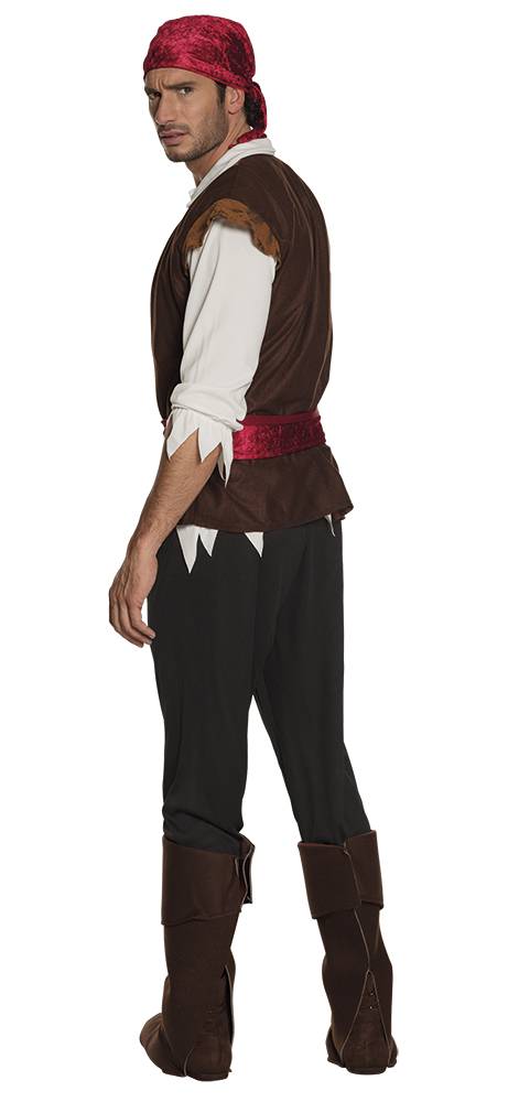 Inhoud: piraten hoofdband, shirt, jasje, riem, beenkappen en broek