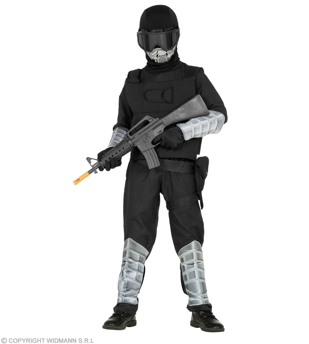 Inhoud: jumpsuit, vest, masker met capuchon, veiligheidsbril, riem met holster, armbeschermers, scheenbeschermers, handschoenen