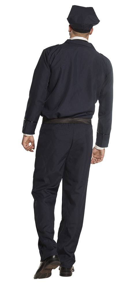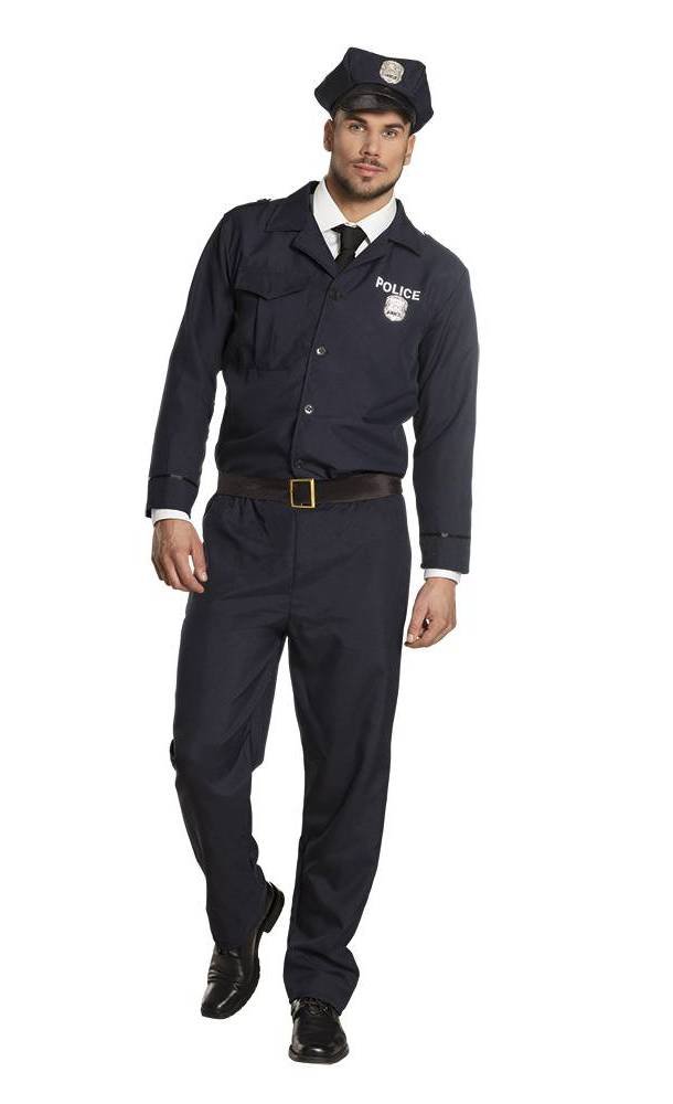 Inhoud: politie jas met badge, broek, riem en pet
