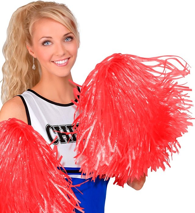 Deze rode pom pom is een leuk accessoire voor feestjes, sportevenementen of verkleedpartijen