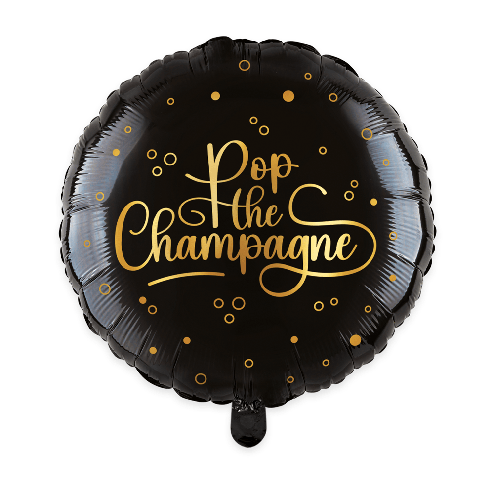 Pop The Champagne Helium Ballon Zwart Goud 45cm
